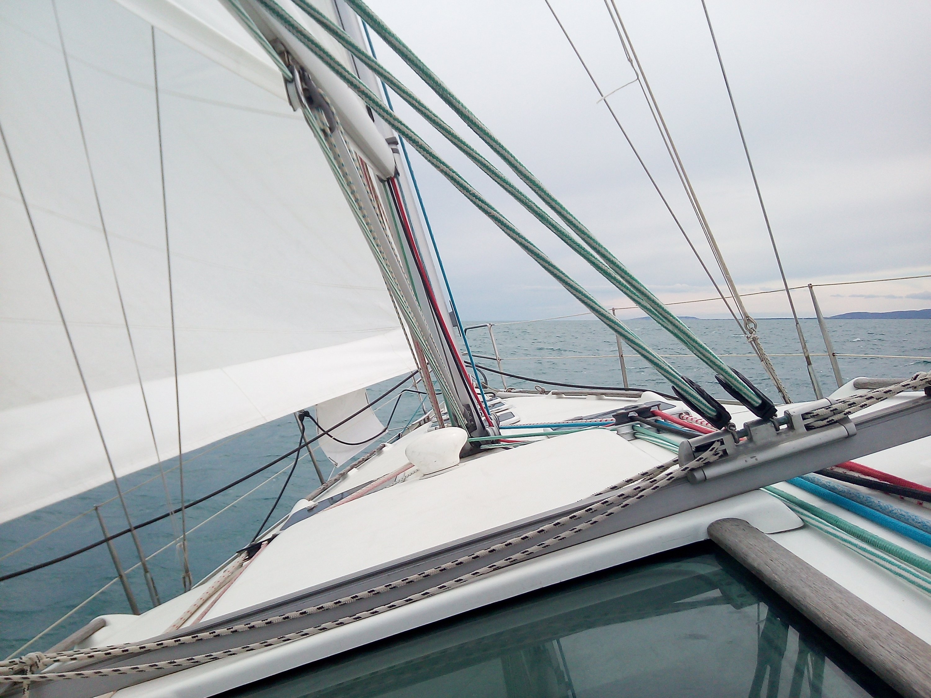 Belle navigation dans la brise aujourd’hui. Nord ouest ↘️ le matin puis bascule au sud est ↖️ à 11h. L’après midi nouvelle bascule de vent pour finir la journée sur une belle brise de nord ouest ↘️. Merci et bravo aux stagiaires pour leurs progressions.