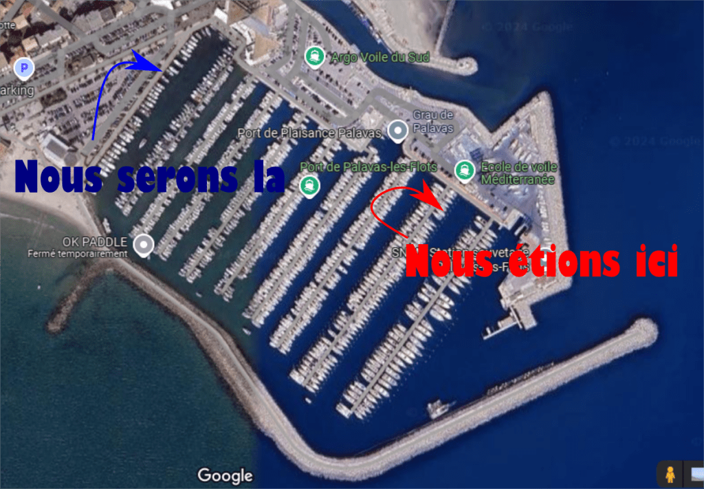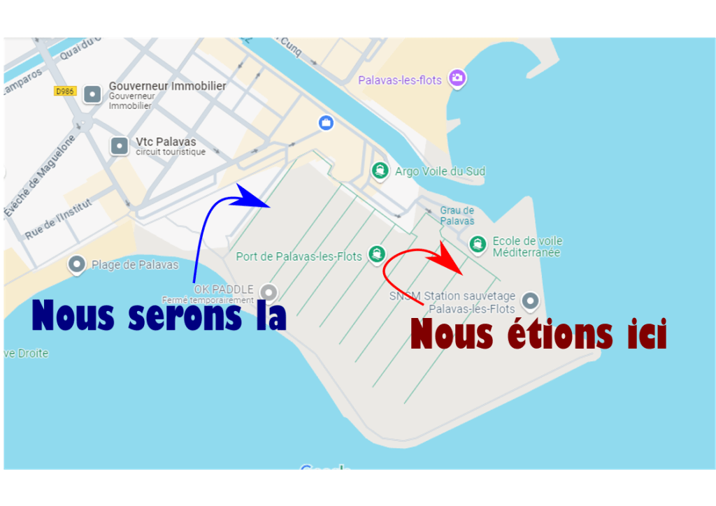 À compter du dimanche 5 mai 2024, le support de l’école de voile Méditerranée change de place. Il sera désormais situé à la place J-25 sur le quai d’honneur ( le quai en béton à côté des restaurants, face au casino). Le rendez-vous des cours se fera devant le bateau (voir les plans ci-dessous).