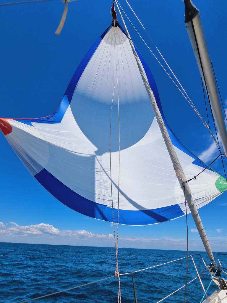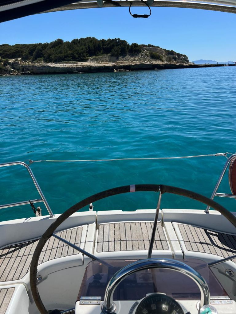 C’est au lendemain de la fête de la musique que le départ a lieu. les courtes présentation, l’avitaillement efficace et un tour du bateau rapide nous permettent de partir vers 10 h. Dans un vent de secteur ouest à nord ouest (établit au alentour de 20 nœuds avec des rafales à 30 soit une tramontane soutenu) nous nous dirigeons vers la crique de la grand conque à coté du cap d’Agde, qui est bien abrité du vent de ce secteur. La journée se passe au rythme des virements de bord, des prise et largué de ris et de relevé d’amer pour se situer. fait notable de cette journée la disparition totale du vent au alentour de midi. La nuit au mouillage n’est pas si tranquille, le vent descendant du promontoire de la grand conque s’engouffre dans l’abris en violente rafales. Ni en force ni en direction le vent ne se stabilisera de la nuit. Le petit déjeuner et le café devenu nécessaire après une nuit si courte, est pris dans un mouillage devenu plus tranquille. La nécessité de déposer une équipière dans un port muni d’une gare, nous fait choisir Sète pour notre deuxième nuit. La faible distance et le vent resté frais (au alentour de 20 nœuds) nous permet de nous entraîné a LA manœuvre de récupération d’objet flottant avant le repas qui sera pris au mouillage de l’Anau (au pied du mont st clair).