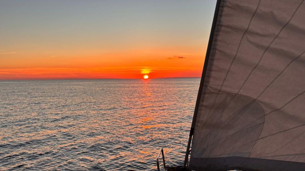 C’est donc à six que nous continuons ce stage guidé désormais par le vent seul. Un tour aux fameuse Halles de Sète, malheureusement trop matinal pour l’autochtone nous vois petit déjeuné à la boulangerie d’en face ou les quelques personne présentent discutent du concert de MAC Solar, la veille au théâtre de la mer. Les amarres sont larguées dans un flux d’ouest mollissant et pivotant au sud ouest (bien que cette direction s’apparente à du thermique ce n’en n’ai pas et on en aura la confirmation plus tard) l’envie de faire de la route et de ne pas revenir sur nos pas nous conduisent, sous spi, à l’est. La moyenne est élevée et la route avance bien, suffisamment pour tenir un petit pari sur notre arrivé au Frioul à 22h30. Malheureusement pour la « team frioul » une rotation de vent au sud-est nous conduira seulement à Sausset les pin et pas avant 2h du matin, heure à laquelle nous dînons. Le réveil n’est pas mis mais il est bien la au alentour de neuf heures. Douche, Petit dej et c’est repartie. Mercredi le cap sera remis à l’ouest pour gagner le mouillage de Beauduc qui sera comme à son habitude (quant il y a de l’Autan) un havre de paix. Le vent associé au cap nous permet, après un petit contre-bord de porté le spi. La encore une bonne moyenne est tenu et malgré un départ tardif c’est à 18h que nous mouillons notre ancre. La soirée se passe dans le calme du parc national de la Camargue et nous en profitons pour nous cultiver et en apprendre beaucoup sur la révolution (merci Manon). Le jeudi sera le dernier jour un timing serré et le vent mollissant nous impose un réveil à 6h et le moteur. Palavas et regagné à 13h48 et après des adieux bien trop bref les routes ont divergées. Je remercie chaleureusement Eva, Manon, Pierre, Camille et Chris